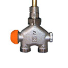 Fűtőtest-csatlakozás alulról, lapostömítésű, merülőcsővel l = 150 mm, Ø = 11 mm. Csatlakozó tengelytávolság: 40 mm. Működés közben szabályozható, a szelep-belsőrész nyomás alatt cserélhető. Csőcsatlakozás G 3/4-os külső menettel, eurokónuszos kialakítással. Csatlakozó csavarzat külön rendelendő