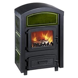 Csempeburkolat, öntvény felépítés, 6 kW teljesítmény, tűzifa és barnaszén tüzelőanyag.